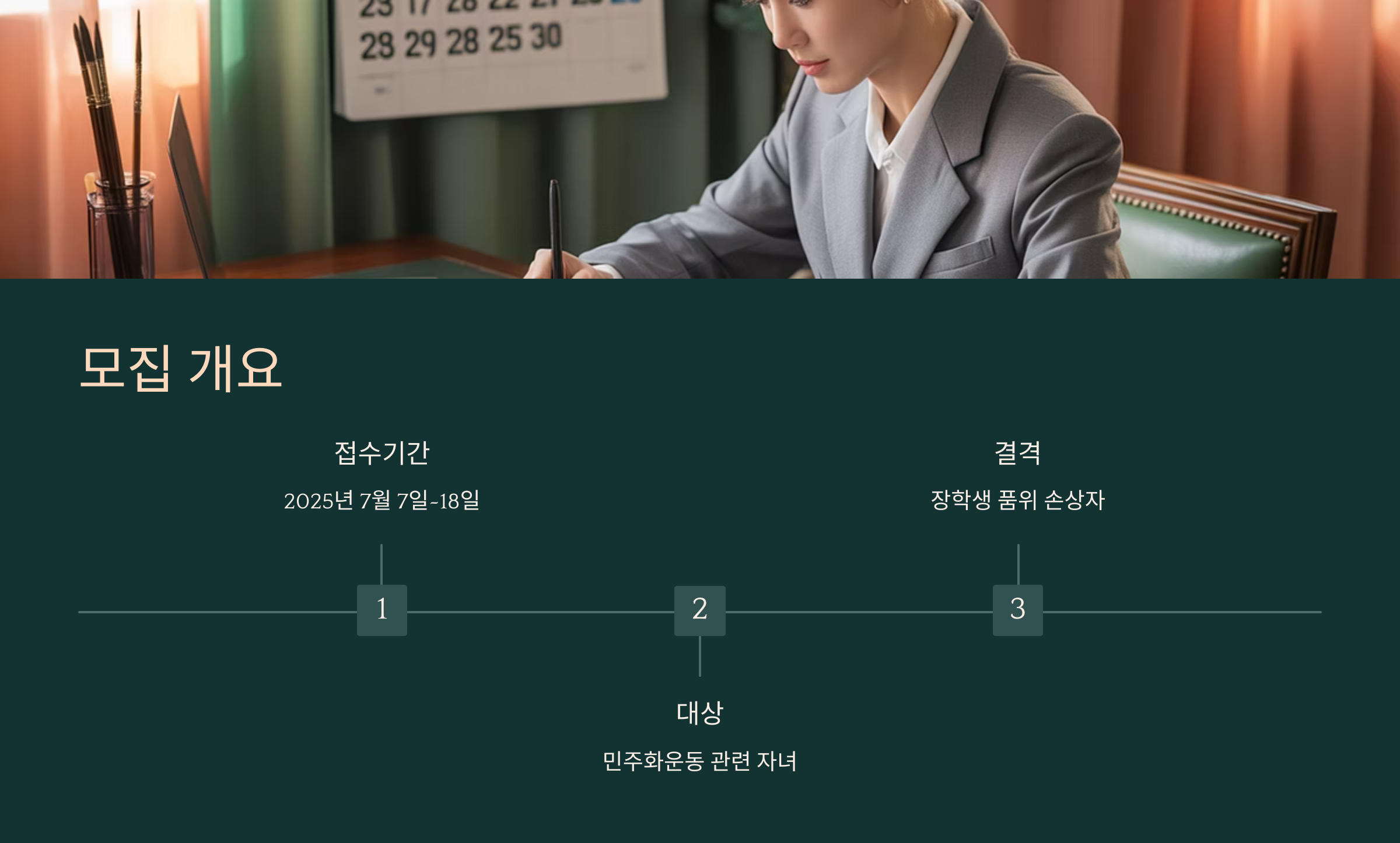 단순한 장학금 지원을 넘어, 민주화의 정신을 기억하고 실천하는 청년 인재 양성을 목표로 하고 있답니다. 재단 측에서도 장학생 활동을 꾸준히 지원하고 격려해주는 분위기라서 더 뜻깊은 프로그램이에요.