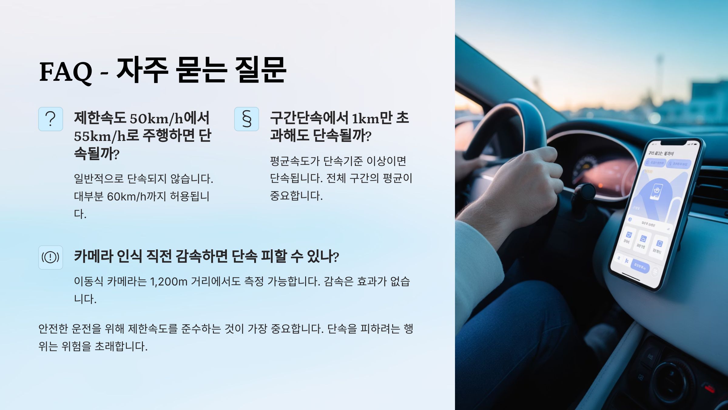 어떤 이유든 과속은 운전자 본인의 안전과 다른 이들의 생명을 위협할 수 있어요. 그래서 단속은 처벌이 목적이 아니라, 예방이라는 걸 기억하는 게 좋아요. 😊