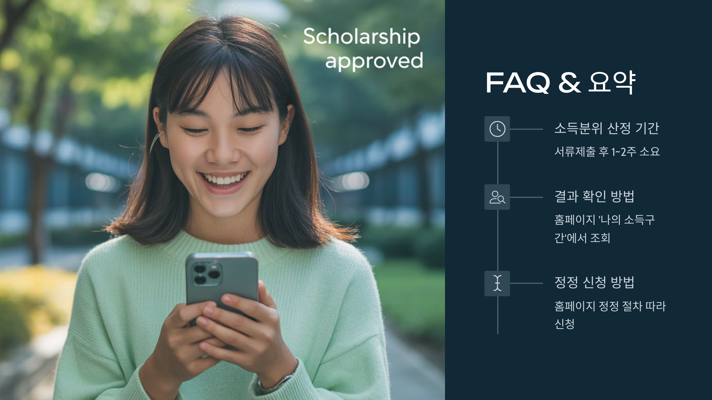 이렇게 분위에 따라 장학금 지원 여부가 달라지기 때문에, 소득분위는 단순 참고용이 아니라 실질적인 혜택을 좌우하는 핵심 지표랍니다.