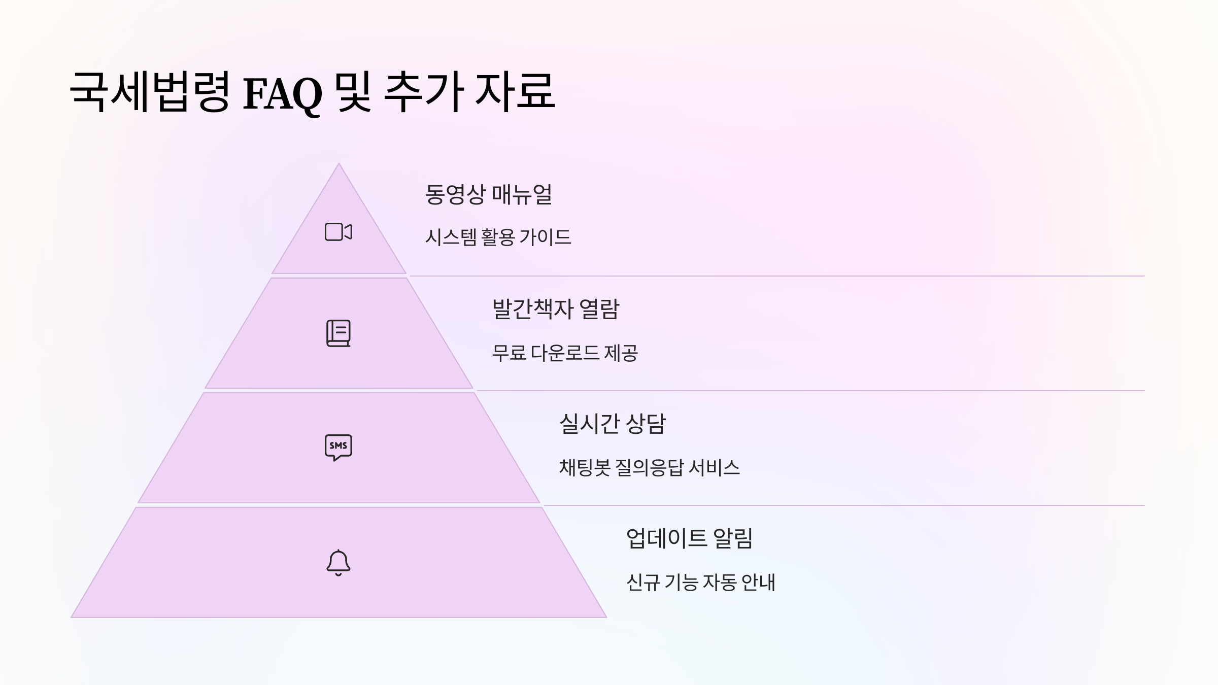 A2. 국세청이 새로운 예규나 법령 개정 사항을 공지하면 시스템에도 즉시 반영돼요. 최신 정보가 항상 유지된답니다.